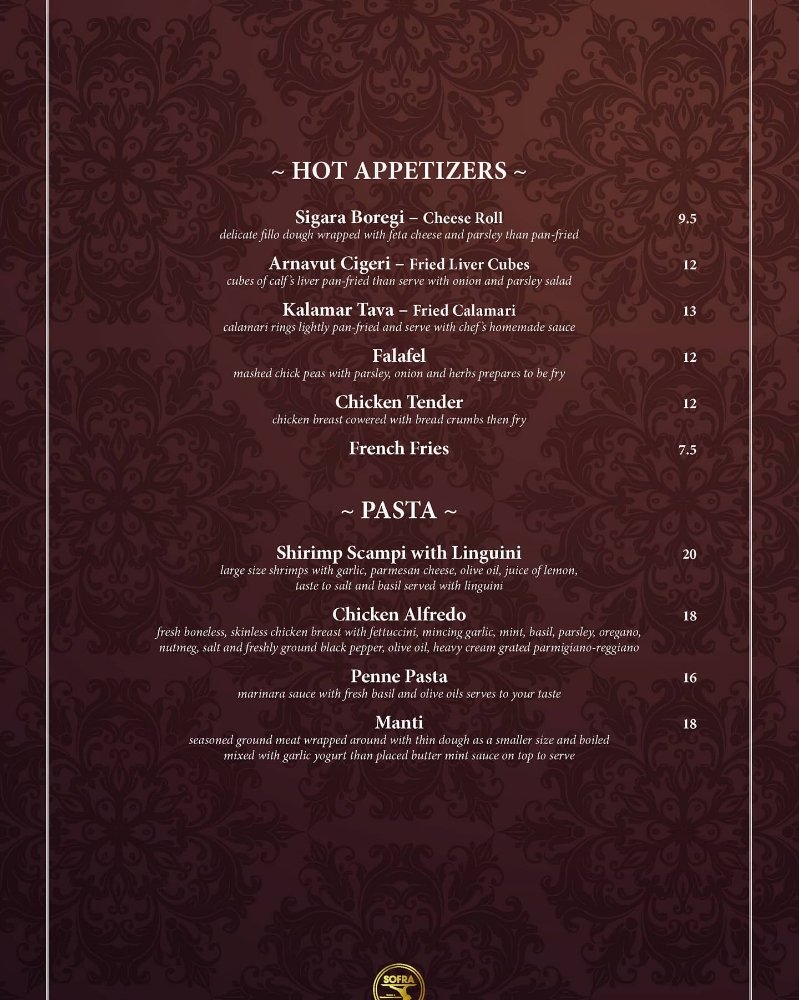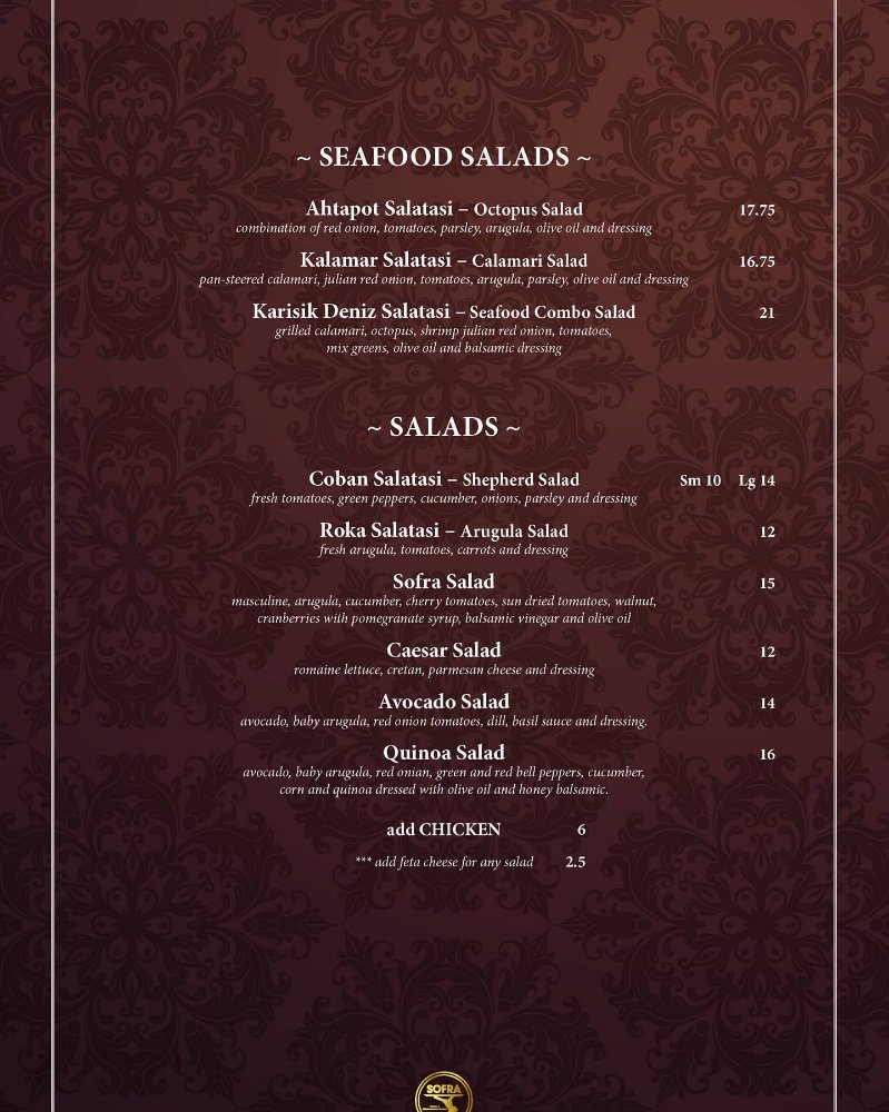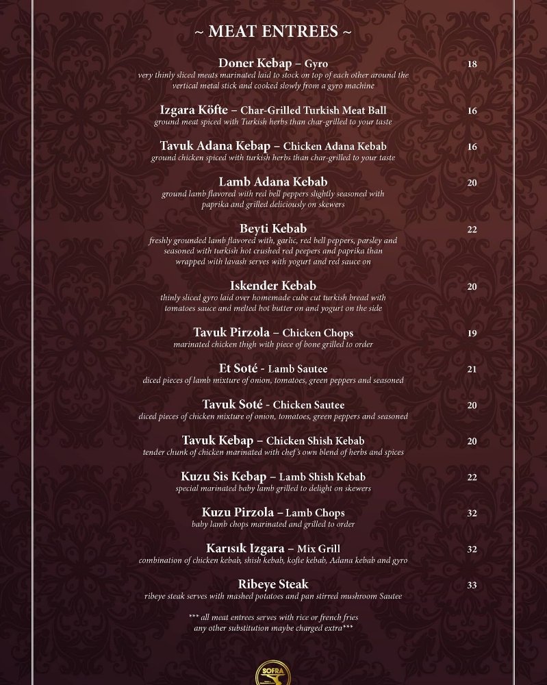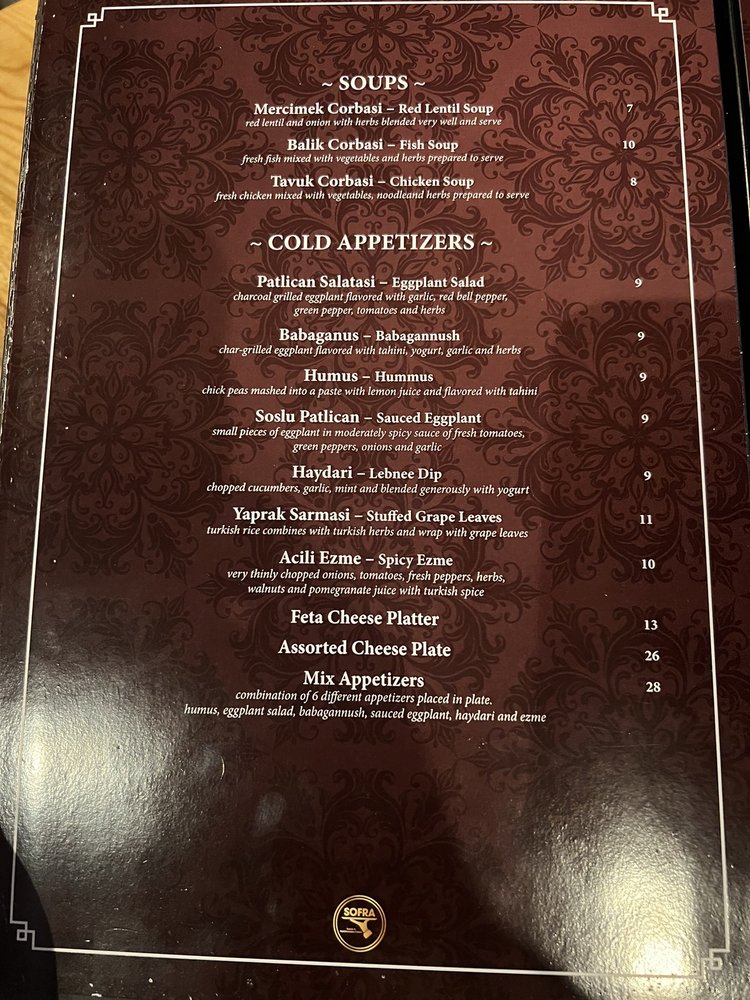 Sofra Turkish & Mediterranean cuisine offers an exquisite dining experience in East Brunswick, NJ. This restaurant caters to Turkish and Mediterranean cuisine enthusiasts with a menu filled with flavorful dishes. The spacious and beautifully decorated dining area sets the perfect ambiance for a delightful meal. Customers rave about the excellent service and the specially catered spaces for group events. Menu highlights include the delectable Lamb Adana Kebab, authentic mixed grill with rice, and the flavorful BABAGANNUSH served with special bread. The restaurant also offers live music on weekends, adding to the lively atmosphere. Additionally, Sofra prioritizes sustainability with plastic-free packaging. From the warm hospitality to the delicious food, Sofra Turkish & Mediterranean cuisine is a must-visit for those seeking a memorable dining experience.